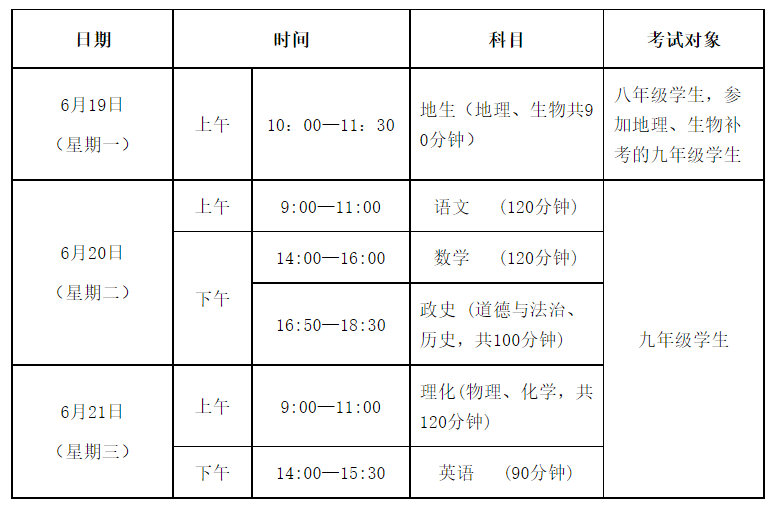 2024年初中毕业生(现八年级学生)考试科目及分值为:生物50分、地理50分(分科合卷),考试成绩计入2024年中考总分。