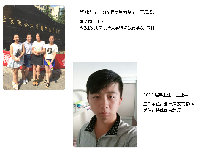 2.根据政策,专业每年推荐15%毕业生参加北京市专升本考试,升入北京联合大学特殊教育学院学习,部分学生选择出国留学继续深造。
