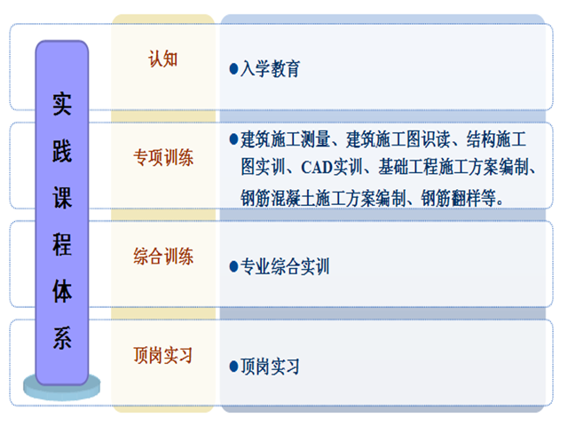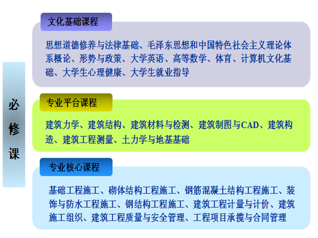 (省级重点专业)【专业培养目标】培养具备工程项目现场施工、组织等职业能力,主要从事建筑工程施工一线的生产、技术、管理等工作的技术技能型人