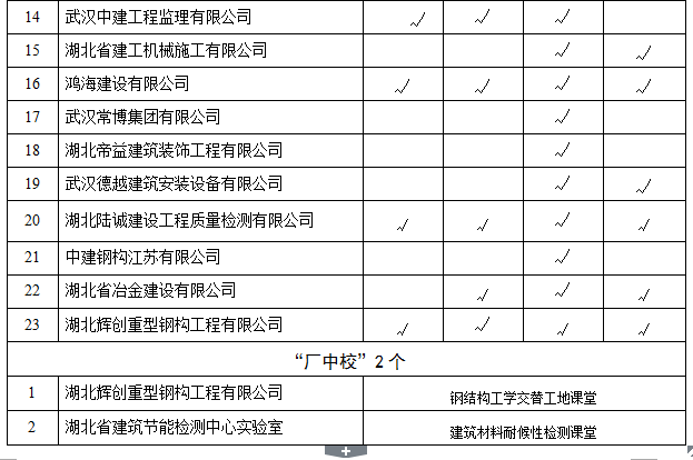 主要就业单位:中建三局、武汉建工集团、新七建设集团、新八建设集团、山河建设集团、中天建设集团、广厦湖北六建、武汉龙泰置业有限公司、广东天衡建设监理公司、大华建设项目管理公司等国内、省内知名企业。
