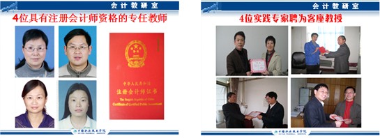 经济贸易系会计专业拥有一支理论扎实,实践经验丰富的“双师型”教师队伍。现有专职教师13名,其中教授1名,副教授4名,注册会计师5名,注册税务师1名,高级会计师3名,全部具备双师素质。现有兼职教师10名,其中楚天技能名师1名,注册会计师5名,注册税务师2名,高级会计师4名。