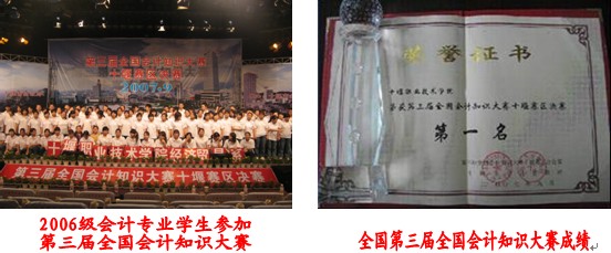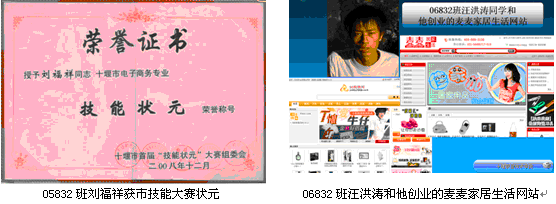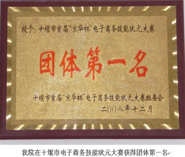 (1)2007年11月,在十堰市首届“京华”杯电子商务技能状元大赛中,电子商务专业师生包揽了前五名,并且获得“团体第一名”称号。