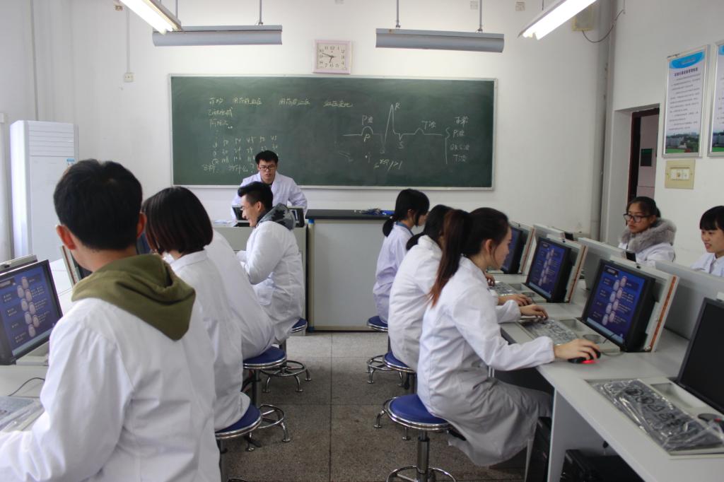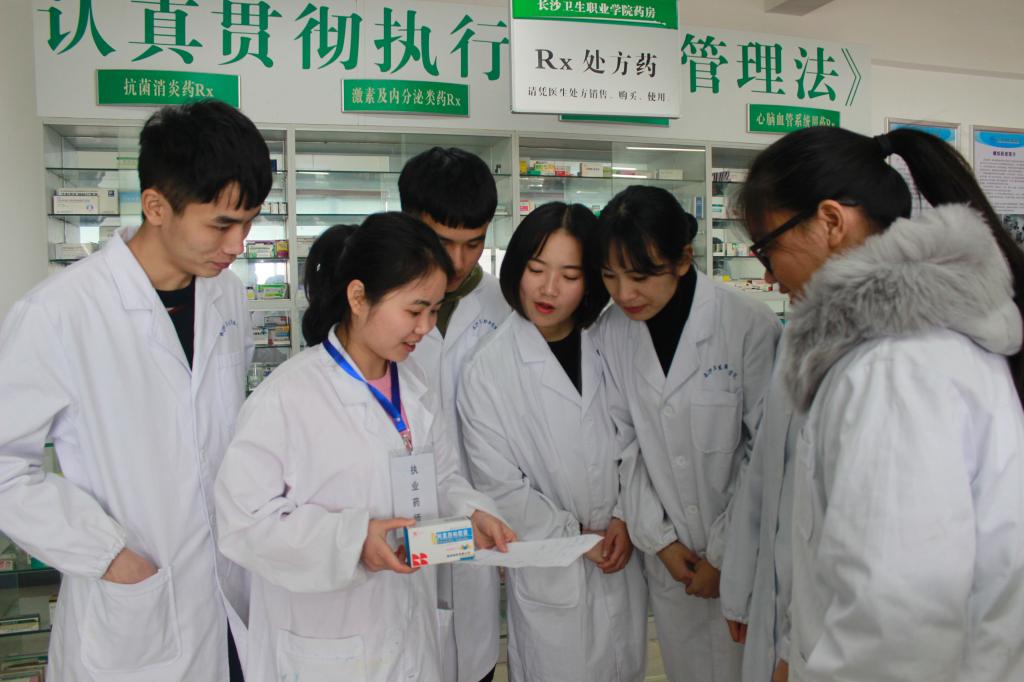 六、药品服务与管理专业 学生在模拟药房进行用药指导训练 老师在处方药柜进行药品调剂的讲解 学生在虚拟动物实训室仿真药物作用情境 老师在计算机房指导学生进行药品采购仿真实训 学生在计算机房进行药品经营质量管理虚拟实训 培养目标:培养具备药学服务、处方调剂、药品质量控制、药品购销和管理能力;毕业后能在医药公司、零售药店、医院药房、健康服务机构从事用药指导、药物咨询、健康教育、药品调配和销售及药品质量管理、采购和商务服务的药学技术技能型人才。 主要课程:药理学、药剂学、药事管理与法规、临床医学概要、医药市场营销技术、药学服务、临床营养学基础、中成药学、药品经营质量管理实务。 就业方向:在医药公司、社会药房、医疗机构和健康服务机构从事药学服务、药品的供应和质量管理、医药商品的采购和销售及药物的配制等工作。 就业前景:近年来,随着城镇化、人口老龄化、生态环境及生活方式变化,国家把卫生健康事业摆在优先发展的战略。立足于专业化服务和大健康市场,医药行业迎来了快速发展的新阶段。药品质量、用药安全、药品供应成为药学行业的工作重心,药品质量管理和药学服务水平成为企业的核心竞争力。行业的转型发展,对从业人员赋予了新的要求,各药房对用药指导人员和健康咨询服务人员需求增加,各医药公司对药品质控、质管人员及专业销售人员、特殊药品购销人员需求增加,各医院对静脉配置药学工作人员需求增加。药品服务与管理专业培养的具有药品质量管理、合理用药指导、药品专业购销能力的技术技能型人才成为各医院、医药公司、药房的抢手人员,就业前景非常好。 七、临床医学专业 培养目标 培养适应我国社会主义现代化建设发展需要,德、智、体、美全面发展,掌握临床医学专业必备的基本理论知识和专业技能,具有较强的临床医疗职业技能和临床医疗服务能力,具有良好的职业道德、人文素养、实践能力和创新精神,毕业后能在社区、农村基层提供医疗、保健、预防、康复、计划生育和健康教育等综合卫生服务,“下得去、留得住、有作为”的应用型卫生技术技能型人才。 主要专业课程 人体解剖学、生理学、生物化学、病理学、病原学、药理学、诊断学、内科学、外科学、妇产科学、儿科学、传染病学等。 就业方向 在社区卫生服务中心、乡镇卫生院、村卫生室和民营医疗机构等从事医疗、卫生防疫、保健和卫生管理工作;在执业医师指导下,在医疗、预防、保健机构中试用期满一年的,参加执业助理医师资格考试,获得执业助理医师资格。 就业前景 《卫生事业发展“十二五”规划》提出:加强农村三级卫生服务网络建设。继续加强乡镇卫生院和村卫生室建设。积极推进乡镇卫生院和村卫生室一体化管理。到2015年,基本实现每个乡镇有1所政府举办的卫生院,每个行政村有村卫生室,提高乡、村卫生机构设备配备水平。显然,广大农村地区需要大量的全科医生。湖南省是一个拥有7120多万人口的农业大省,建设社会主义新农村亟待解决目前农村缺乏基本的医疗保健条件,目前,我省80%的卫生资源分布在城市,占全省总人口70%的农民只拥有20%左右的卫生资源。乡以上医疗机构平均每千人仅拥有病床3.07张,执业(助理)医师1.32人,远远低于全国平均水平。因此,为社区、农村和基层培养临床医学专业学生,就业前景广阔。