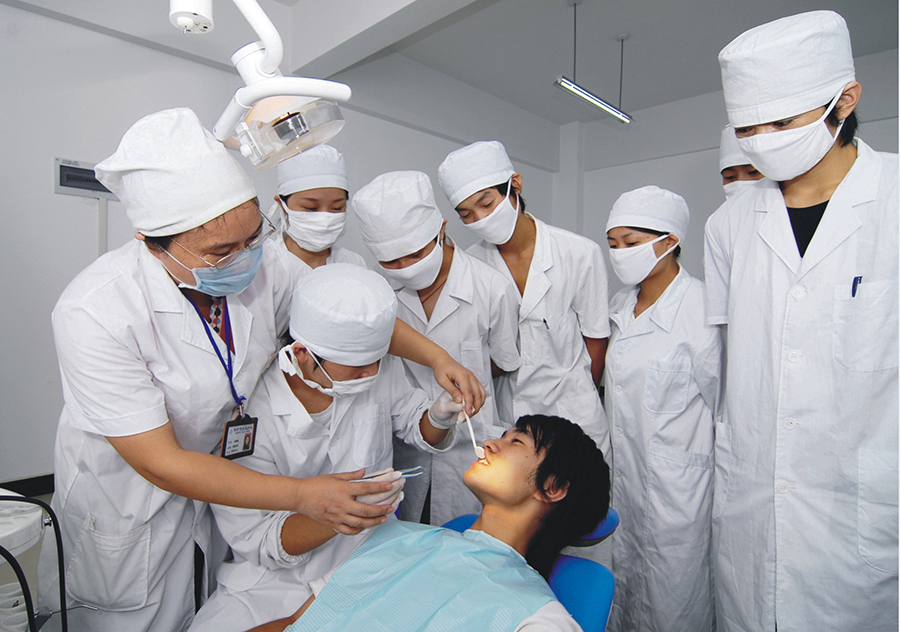 八、口腔医学专业 培养目标:培养适应我国医疗卫生事业发展需要,德、智、体、美全面发展,具有良好职业素养、人际交往与沟通能力,具有较强的实践能力和创新精神,掌握基础医学、口腔医学的基本理论和专业技能,毕业后能在乡镇、社区医疗卫生服务机构和口腔门诊(诊所)等各级医疗卫生单位从事口腔常见疾病的预防、治疗的高素质技术型人才。 主要课程:人体解剖与组织胚胎学、诊断学、临床疾病概要、口腔解剖生理学、口腔组织病理学、口腔颌面外科学、口腔内科学、口腔修复学、口腔正畸学、口腔预防保健学等。 就业方向:在乡镇卫生院、社区医疗机构、口腔诊所等从事口腔常见病、多发病诊治和口腔预防保健等医疗岗位;在执业医师指导下,在医疗、预防、保健机构中试用期满一年的,参加执业助理医师资格考试,获得执业助理医师资格。 就业前景:目前我国口腔科医生与人口的比例是1∶40000,而国际公认的合适的比例应为1∶2000。我国现有口腔医生2.5万人左右,而与此同时却有25亿颗龋齿待填充,6亿颗错位畸形待矫正,10亿牙周病患者待医治。本专业毕业生能在乡镇、社区基层医院从事口腔医疗工作、自主创业开办诊所、还能从事与口腔相关的整形美容工作等。爱美之心人皆有之,随着社会进步,人们生活水平的提高,看牙的人会越来越多,口腔医学专业就业前景非常广阔。
