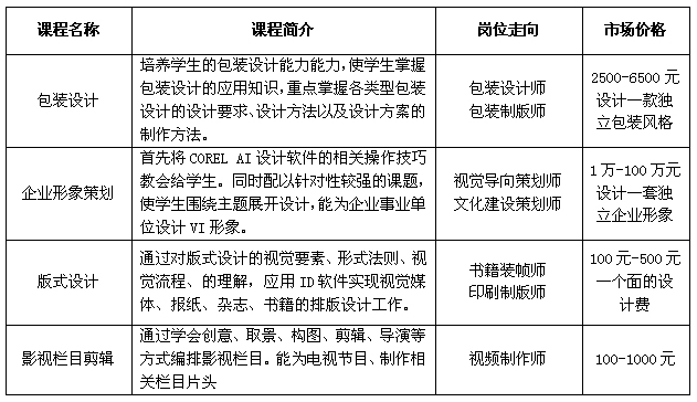本专业借助苹果公司教学基地和强劲的专业实训基地,培养有一定艺术素养,掌握销售商品的包装、广告设计技巧,企业形象策划以及营销基本理论和手绘表现能力的专门人才。在此基础上,针对媒体岗位的市场需求,培养媒体专业人才的色彩感觉、导演能力、设计美感。确保本专业人才能完全胜任电视栏目包装、企业形象宣传片的创意、设计、制作等岗位任务的需要。 | ![]() |