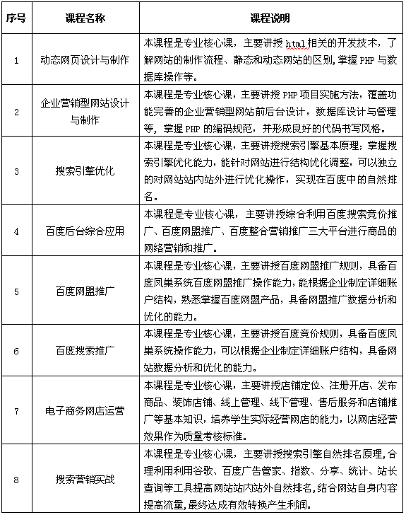 现有互联网百度推广网络实训室1间(实训楼203),网络销售模拟实训室1间(实训楼210),网站设计开发实训室1间(实训楼401)。