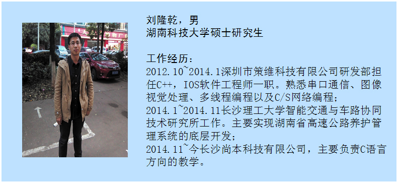 姓名:许文祥 性别:男 出生年月:1993年6月 毕业时间:2014年7月 专业:移动互联应用技术工作 单位:广州凡越信息科技有限公司职位:iOS 应用开发 收入:10000元/月 成长轨迹: 1、2013年11月就职于上海炎翔通信科技有限公司,担任iOS APP程序员,公司业务主要计算机软硬件产品研发、销售以及测试技术服务,系统集成,设计与策划、信息咨询等。 在职期间负责公司的产品开发。 2、2014年12月就职于广州凡越信息科技有限公司,担任iOS程序员,在职期间负责开发即时通讯项目。 |