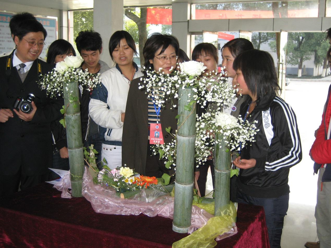 (学生进行花艺设计技能大赛,教育部专家亲临现场参观指导)