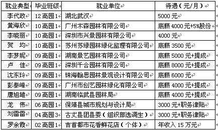 四、工作岗位与就业待遇:毕业生可在花卉苗圃、市政园林、公园景区、街道社区、房地产公司、花店、茶文化公司等企事业单位从事园林花卉苗木的生产、养护、销售服务与经营管理等工作。学生完成学业,学院100﹪负责推荐就业。月薪在3000元以上。