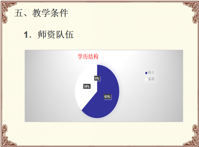 教师团队有正高职称1人、副高7人、博士1人,硕士学位10人、省级优秀教师1人,省级优秀双师型教师1人,州级学科带头人3人,双师型教师25人,占80%。团队“双师型”教师特色鲜明,“传帮带” 工作突出,学术氛围浓厚高素质的双师型教师队伍与有效的实践教学模式保证了本专业毕业生就业率和就业质量。