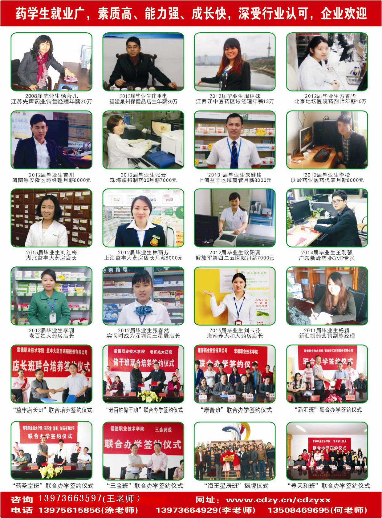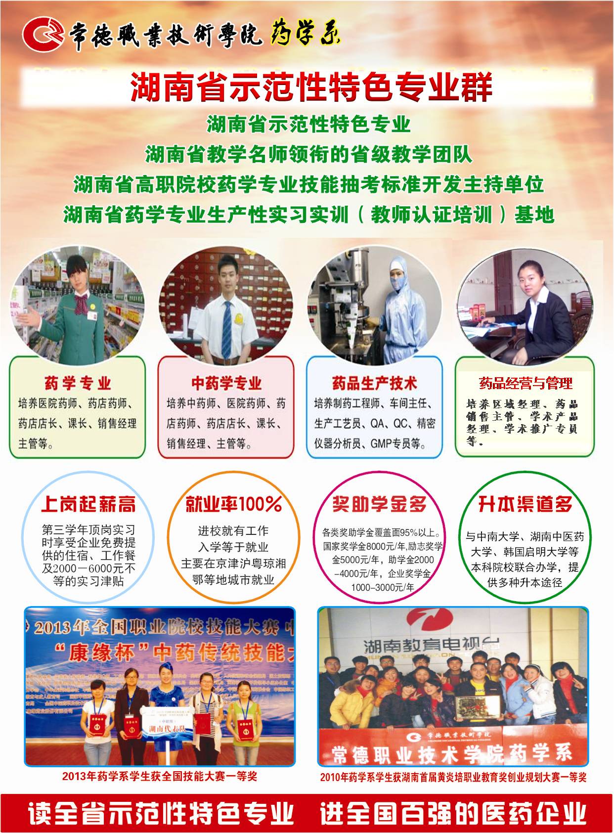 【药学专业】 1、培养目标 面向医院、医药公司、制药厂、连锁药店、食药监局、药检所等,培养具有良好职业道德规范,熟悉药品生产与经营法规,能从事药品调剂、药学服务、药品营销与管理、药品生产、药品检验、药品质量控制等工作的高端技术技能型专门人才。 2、主干课程 药物制剂、药品调剂、医院药学实务、药物检验、中药鉴定、药物化学、药物应用、药事管理与法规、药物商品、GSP、药品营销等。 3、就业岗位 医院药师、药店药师、中药师、药店店长、课长、销售经理、主管等。 【中药学专业】 1、培养目标 面向医院、制药厂、医药公司、连锁药店、食药监局、药检所等,培养具有良好职业道德规范,熟悉药品生产与经营法规,能从事中药鉴定、中药调剂、中药饮片生产、中药制剂生产、中药养护、中药质量控制及中药商品经营各环节的高端技术技能型专门人才。 2、主干课程 中药鉴定、中药调剂、中药炮制、中药制剂、制剂分析、中药药理、方剂与中成药、中药养生食疗、实用中药技能、中药化学、药品营销、药事管理等。 3、就业岗位 中药师、医院药师、药店药师、药店店长、课长、销售经理、主管等。 【药品生产技术专业】 1、培养目标 面向药品生产企业、食药监局、药检所等,培养具有良好职业道德,熟悉药品生产法规,具备生产现场操作与组织管理能力,能从事药品生产、药品检验、药品质量控制等工作的高端技术技能型专门人才。 2、主干课程 药物合成、药物分离技术、药物制剂、制药设备与工艺、药物检验、仪器分析、中药鉴定、中药炮制、药物化学、药物应用、药事管理与法规、GMP实施与认证等。 3、就业岗位 制药工程师、车间主任、生产工艺员、质量管理员(QA)、药品检验员(QC)、精密仪器分析员、GMP专员等。 【药品经营与管理专业】 1、培养目标 面向药品营销企业、药品生产企业、医药外贸企业及医药管理部门等,培养具有良好职业道德规范,熟悉药品经营法规,能从事药品经营管理、药品营销策划、药品学术推广、药品市场开发、药品招商与管理等工作的高端技术技能型专门人才。 2、主干课程 药品营销、药物商品、GSP、药事管理与法规、医药企业管理、药物制剂、药品调剂、药物应用等。 3、就业岗位 区域经理、药品销售主管、学术产品经理、学术推广专员、药品营销专员等。 |
