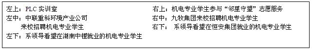 机电一体化技术专业在2009年在湖南省高等职业院校专业建设评估中列湖南省第5名,2014年顺利通过湖南省职业院校技能抽考,2016年在湖南省职业院校毕业设计抽检中学生毕业设计成果合格率达96%,《机械制图》是湖南省省际精品课程,是中央财政支持的高等职业学校提升专业服务能力的建设项目(2011年立项、2013年验收通过),2013年在湖南省职业院校春季技能竞赛中自动生产线装调项目荣获三等奖。