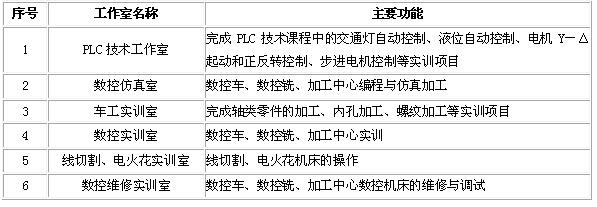 本专业拥有中央财政支持的数控实训基地,现有标准厂房两栋,面积7800㎡,有实训生产加工设备256台套,价值800万元。可同时容纳1200学生实训,并具有产品开发、制造和进行科研的功能。