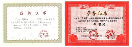 1)2016年获湖南省职业院校技能竞赛三维建模数字化设计与制造项目三等奖;