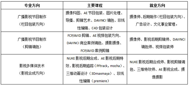 广播影视节目制作(栏目包装方向)、广播影视节目制作(剪辑调色方向)、影视多媒体技术(影视合成方向)专业介绍
