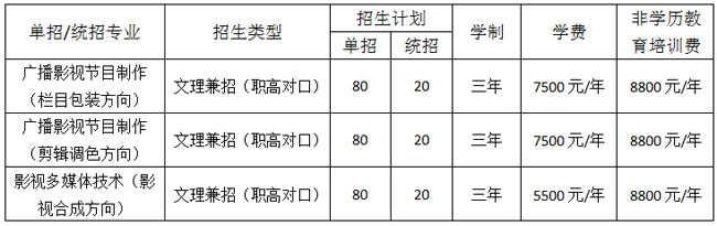 主持与播音 (单招统招航空服务方向) | 文理兼招 (含职高对口) | 20 | 20 | 三年 | 7500元 | 9800元 | 8600元 | 5000元 | 23400元 | ||
