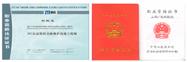 “一考双证”是指通过助理工程师认证考试,能获得中兴通讯NC助理工程师认证同时还能够获得工信部的职业技能认证(技师认证)。