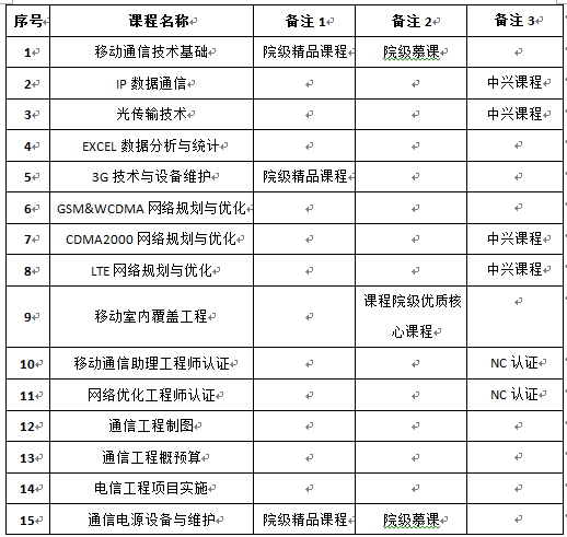 专业就业支持体系 该专业方向学生入校即与中兴通讯签订就业服务协议,推荐到中兴通讯及产业链、中国移动、中国联通、中国电信、铁塔公司、通信设计公司、移动通信工程公司、基站维护公司、虚拟运营商等企业,从事移动通信工程设计、系统设备开通与调测、系统设备运行与维护、移动通信工程项目管理等岗位工作。