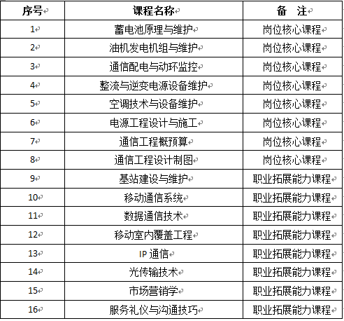 培养德智体美劳全面发展,具有良好的政治素质和职业素质;具有通信电源动力专业基本素质和能力,能够比较熟练对基础电信网络中的电源设备及网管监控系统进行维护、值班、调测、检修、障碍处理,初步具有通信工程设计和施工能力;具备把握市场动态、善于沟通、熟悉通信业务、能妥善处理用户矛盾的能力。培养适应于生产、建设、管理、服务第一线的综合型高素质技能型人才。