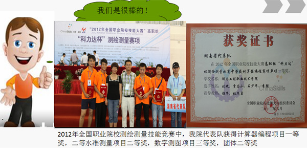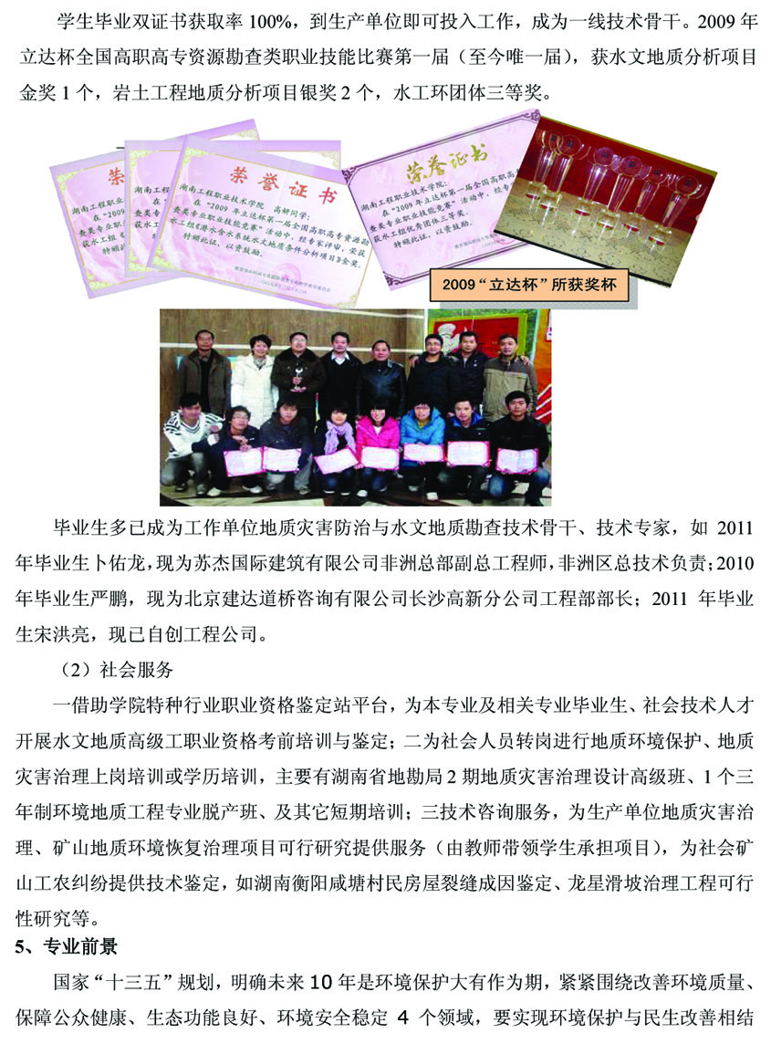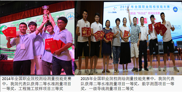 多年的建设,本专业成绩斐然:2008年,入选水工环省级教学团队;2011年,入围中央财政支持建设专业;2011年成功申报省级环境与工程地质生产性实习实训基地;2013年,通过中央财政专业验收;2014年,专业通过省级示范性(骨干)高等职业院校建设项目重点建设专业验收。