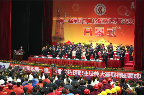 (图2 第一届全国地勘钻探职业技能大赛决赛湖南工程职业技术学院主赛场)