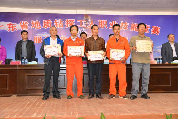 (图10 在广东省钻探工职业技能竞赛中获得前5名的人员领奖时的合影)