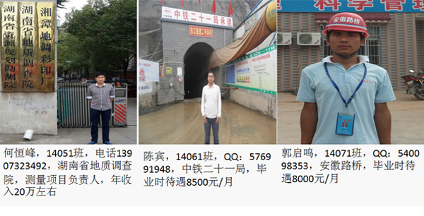 李顺义 | 湖南省有色地质勘查局214队 | 18373383100 | 钻探技术员 | 2013届毕业生 |