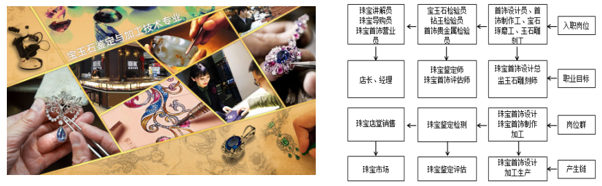 培养目标:本专业培养面向珠宝首饰质检部门、珠宝首饰生产加工企业、珠宝首饰商贸公司等企事业单位,在生产、服务第一线从事珠宝首饰产品质量检验、设计、加工、生产管理和珠宝首饰营销工作的精益求精、别具匠心的复合型技术技能型人才。