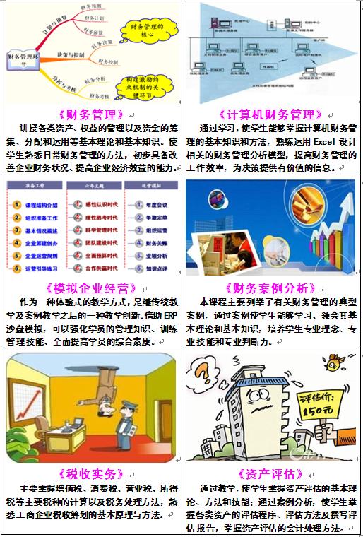 本专业面向企、事业单位或中介机构,培养具备会计学、财务管理、投资理财等方面知识和能力,从事资金管理、资产管理、投资管理、资本运营管理、成本管理、预算管理、纳税筹划等投资理财中介服务工作的“高素质技能型”人才。