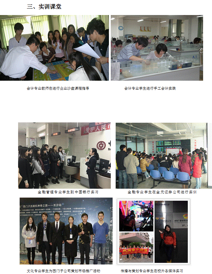本专业依托国家汉语言文化传播基地、长沙雅思考试中心、小新星英语培训学校等实习实训平台,主要培养能在涉外企事业单位中从事国际商务单证员、国际贸易业务员、国际商务助理和跨境电商营销人员等岗位需求的高素质技能型人才,也为市县乡幼儿园、小学和英语培训机构培养能够从事幼儿园双语教学、小学英语教学及少儿英语培训的高素质技能型专门人才。商务英语专业定点实习就业单位有:迪拜机场免税店(Dubai Duty Free)、迪拜购物中心(Dubai Mall)、湖南锦程物流有限公司、招商银行、中国电信、深圳移动等。主要开设课程有:国际贸易实务、外贸函电、商务英语笔译、外贸单证实务、国际商务谈判和跨境电子商务等。
