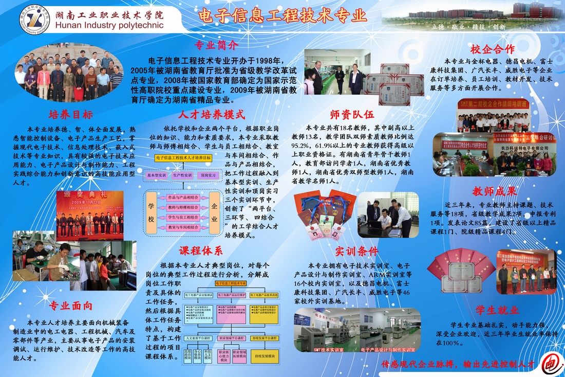 计算机网络技术专业开设于2000年,目前已毕业的学生达2300余人,2008年荣获湖南省级精品专业,目前是我院国家示范院校建设专业。