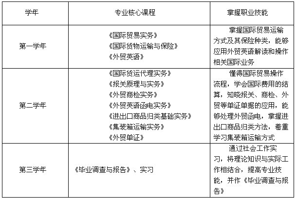 培养目标:本专业培养适应经济建设需要,了解航运、海关和中国对外贸易方针、政策及相关法规、惯例,掌握了解报关、国际货运、国际贸易行业的专业知识与专业操作技能的高级应用型人才。