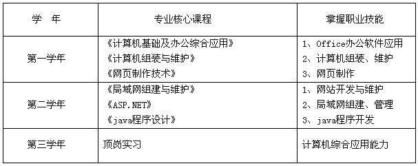 培养目标:本专业掌握计算机的基础理论和基本技能,具有较强的实践能力,能从事软件开发,办公自动化,编制一般应用程序及计算机图形处理等工作,具有开拓精神和创新能力的高级应用型职业技术人才。