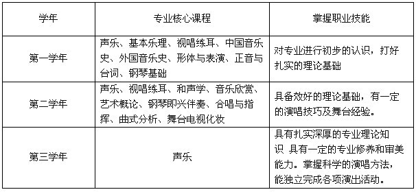 培养目标:本专业培养具有音乐表演专业理论知识和艺术素质,较系统的掌握科学的演唱方法与技能,具有较好的专业理论和专业技能的声乐表演的应用型音乐表演专业人才。