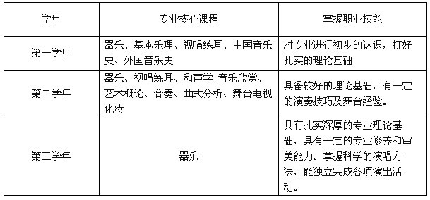 培养目标:本专业(包括钢琴、电吉他、打击乐、大提琴、贝司等)培养具有音乐基础理论知识和艺术素质,较系统的掌握科学的演奏技能的应用型专业人才。