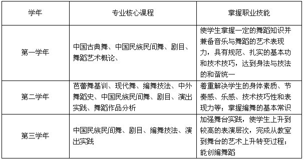 专业核心能力:具有较高的专业理论和专业技能的舞蹈类表演专业人才。
