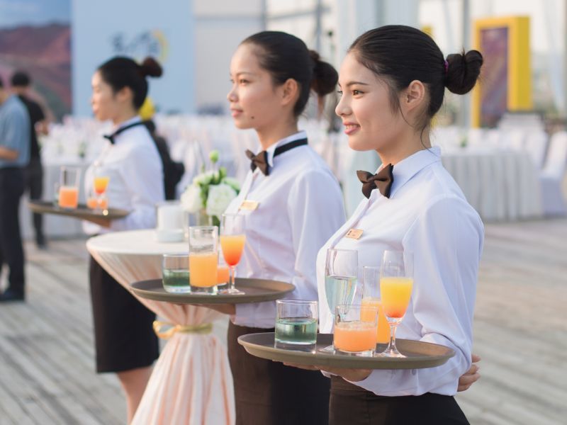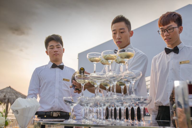 酒店管理专业学生参加北海香格里拉大饭店大型户外西餐宴会服务