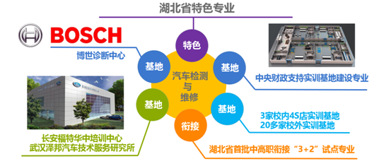 本专业为湖北省特色专业、中央财政支持实训基地建设专业、湖北省首批“五年一贯制”改革试点专业,同时也是湖北省首批中高职衔接“3+2”试点专业。专业师资雄厚,拥有楚天技能名师、江城首届技能名师、全国职业院校技能大赛评委、中国汽车工程学会特聘专家等。