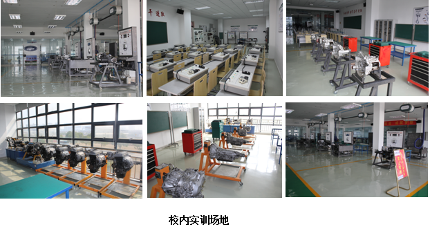 目前校内实训中心面积为6800平方米,分为东西两个区域。本专业在东实训中心有汽车发动机教学实训区、汽车底盘教学实训区、汽车变速器实训区、汽车电器电路教学实训区、汽车检测与故障诊断教学实训区、汽车养护实训区和汽车仿真实训区;在西实训中心有汽车电气一体化教室、汽车电控一体化教室、汽车底盘一体化教室、汽车发动机一体化教室。