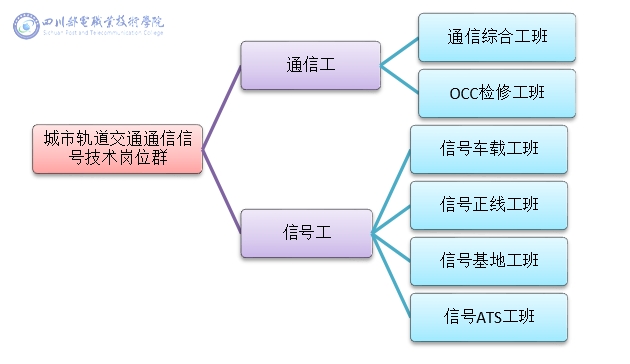 2.就业单位包括:铁路工程局、铁路局、城市轨道交通运营公司、通信信号设备厂商、地方铁路公司等企事业单位。主要从事岗位如图: