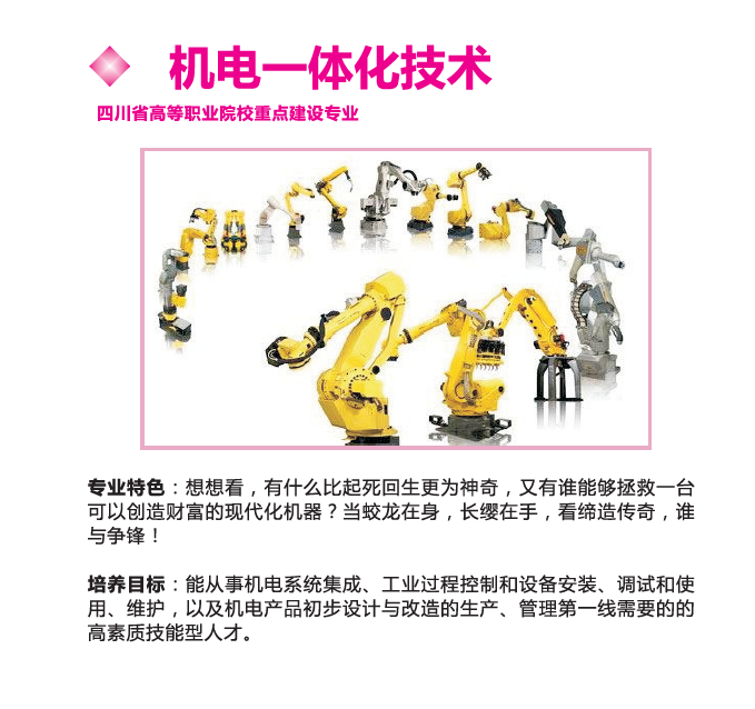 本专业培养适应社会主义现代化建设和民用航空事业发展需要,具备德、智、体、美全面素质和综合能力,符合航空器机电设备修理及管理职业要求的高级专门应用型人才。毕业生达到民用航空器机电设备修理、性能检测、故障诊断等方面知识和技能的要求。毕业生能够从事航空器机电设备修理、维修管理以及其它相关领域的工程技术工作。