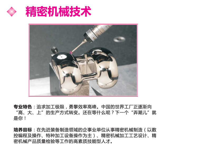 主要课程:《机械制造技术》、《传感器与检测技术》、《飞机维修技术》、《数控加工工艺与编程》、《机械CAM软件应用》、《航空电气基础》、《现代飞机结构与系统》、《CAD/CAM软件应用实训(UG-CAM)》、《飞机维修技术》、《航空电气基础》、《现代飞机结构与系统》、《飞机机电设备故障诊断实训》。