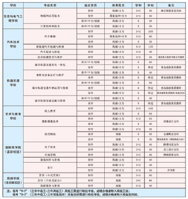 青岛技师学院1958年建校,是青岛唯一一所由市政府创办并直属管理的技工院校。现有即墨区、市北区洛阳路、市北区嘉兴路、蓝色硅谷4个校区,总占地面积860余亩,建有国家级技能大师工作室、齐鲁技能大师特色工作站和180余个实验实训室,实训面积5.8万平方米,下设8个二级学院和基础教育部,在校生1.6万余人,年培养预备技师和高级技工3500余名,教职工539人,其中,副高以上118人,全国技术能手、山东省富民兴鲁奖章获得者、山东省、青岛市劳动模范、首席技师、拔尖人才近40人。