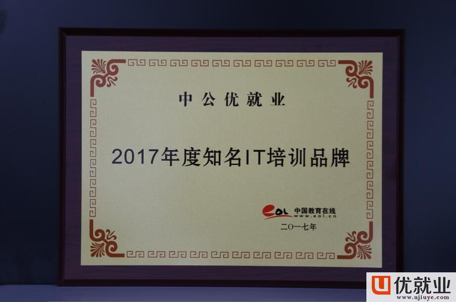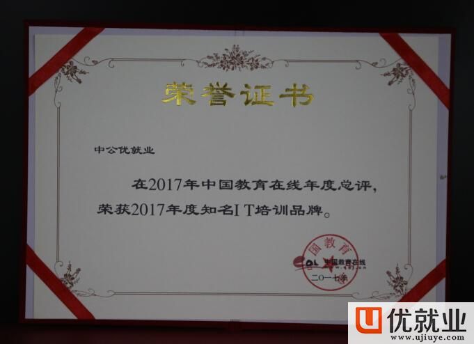 中公优就业荣获中国教育在线“2017年度知名IT培训品牌”大奖